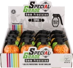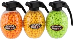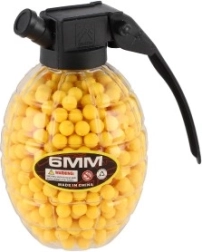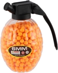 Completa tu equipo con un práctico paquete de bolas en un original bote con forma de granada. Dentro encontrarás 800 bolas de goma de 6 mm, que gracias a sus colores llamativos se encuentran y controlan fácilmente. Con el cierre cómodo recargarás el cargador de munición rápida y limpiamente.