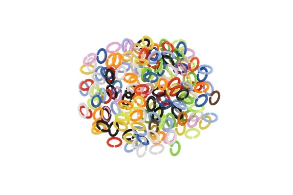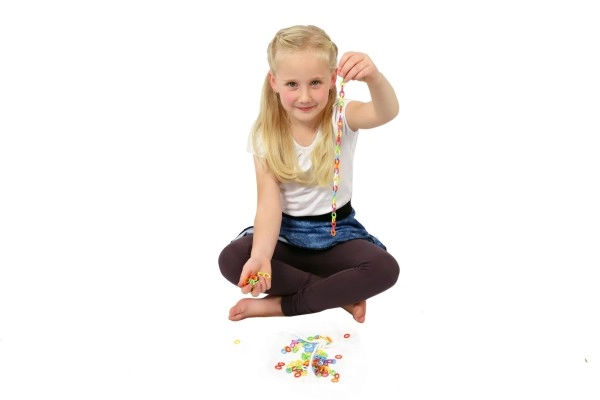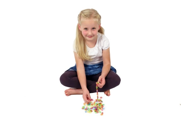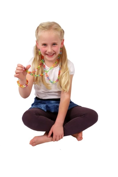 Suficientes C de colores para crear cadenas, pulseras y decoraciones. Los niños ejercitan la imaginación y la motricidad fina con cada clic.