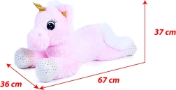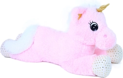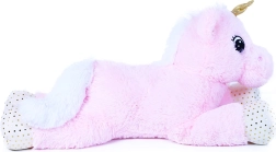Los detalles cuidados, como el cuerno dorado, las pezuñas con lunares y la suave crin y cola, subrayan su aspecto de fantasía. El gran formato de 70 cm ofrece espacio suficiente para abrazarlo y proporciona a los niños una sensación de seguridad y calma durante el descanso.