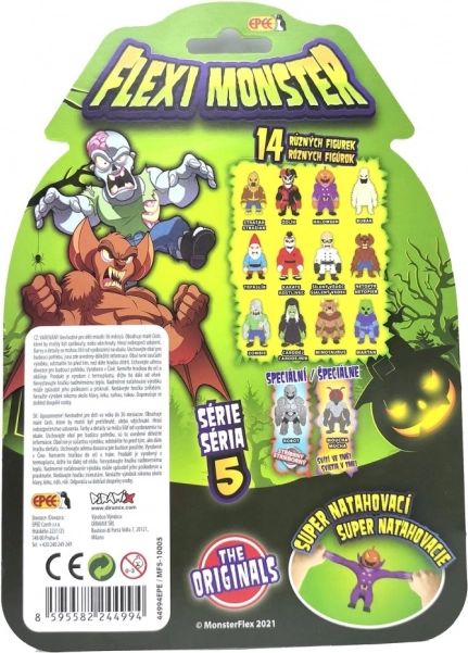 Flexi Monster serie 5 trae un grupo de monstruitos asquerosamente divertidos que te encantarán al instante. Gracias a su material blando y flexible, puedes estirarlos, expandirlos y apretarlos: siempre vuelven a su forma original. Ideal para liberar tensión y para el juego creativo e imaginativo.