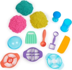 El set definitivo para amantes de la arena cinética incluye 900 g de arena en tres colores (rosa, amarillo, turquesa) y 10 prácticas herramientas, incluyendo 3 utensilios de corte exclusivos para efectos impresionantes. Los niños pueden mezclar, superponer, cortar, prensar y moldear según su imaginación – el juego es adictivo, relajante y seguro.