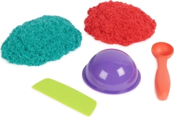 - 680 g de arena cinética (2 colores: azul y rojo), 3 accesorios (cuenco, cuchillo, cuchara dosificadora)