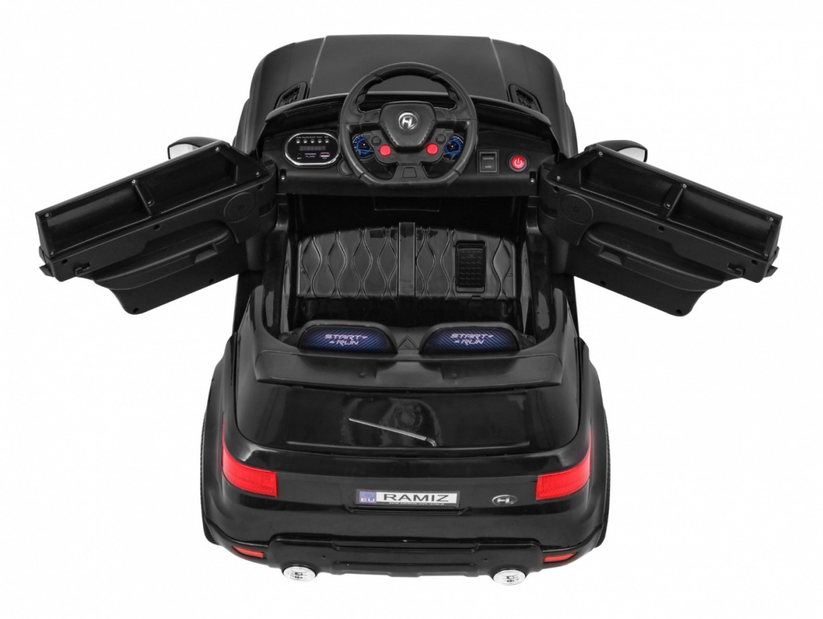 El robusto SUV de plástico está equipado con dos motores de 2×30 W y dos baterías de 6 V/4,5 Ah para un rendimiento estable. El arranque suave Wolny Start garantiza salidas cómodas y seguras, mientras que las luces LED delanteras y traseras y las puertas abatibles con bloqueo intensifican la experiencia de conducción realista.