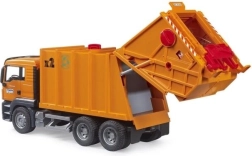 El Bruder MAN TGS está diseñado con atención a los detalles realistas, incluyendo puertas abatibles y un mecanismo giratorio para los residuos.