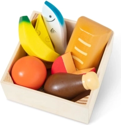 Incluye piezas de madera y plástico, duraderas y seguras para niños a partir de dos años. Los niños pueden aprender sobre diferentes grupos de alimentos y mejorar sus habilidades mientras juegan.