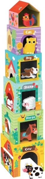 Cubos con animales Granja de 2Kids Toys están diseñados para el aprendizaje y la diversión de los niños. Seis cubos forman no solo una torre apilable, sino también pequeñas casitas para los animales. Cada animal tiene su propio lugar y enseña a los niños a construir correctamente y a reconocer los números. Los colores y las formas desarrollan las capacidades de reconocimiento y la motricidad.
