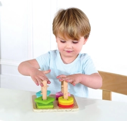 Con este sencillo juguete, los niños pueden practicar su destreza y paciencia, mientras aprenden a reconocer formas y colores y los fundamentos del conteo. El juguete está hecho de madera FSC® de alta calidad y es ideal para el desarrollo de habilidades de los más pequeños.