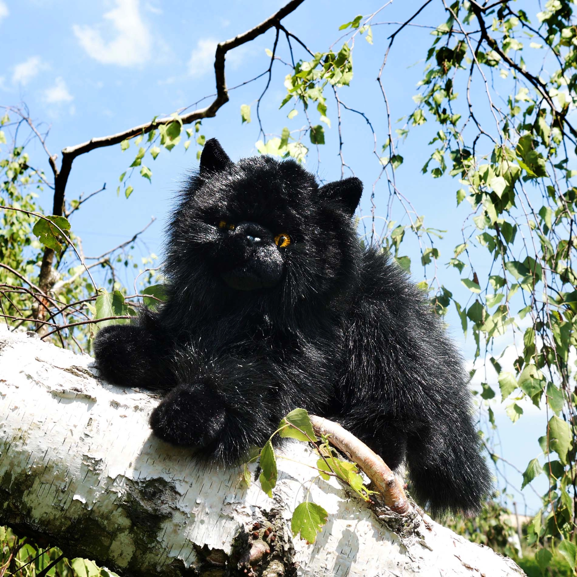El pelo largo y suave, los ojos expresivos y las costuras cuidadas dan al gato una apariencia muy viva. Ideal para abrazar o como decoración.