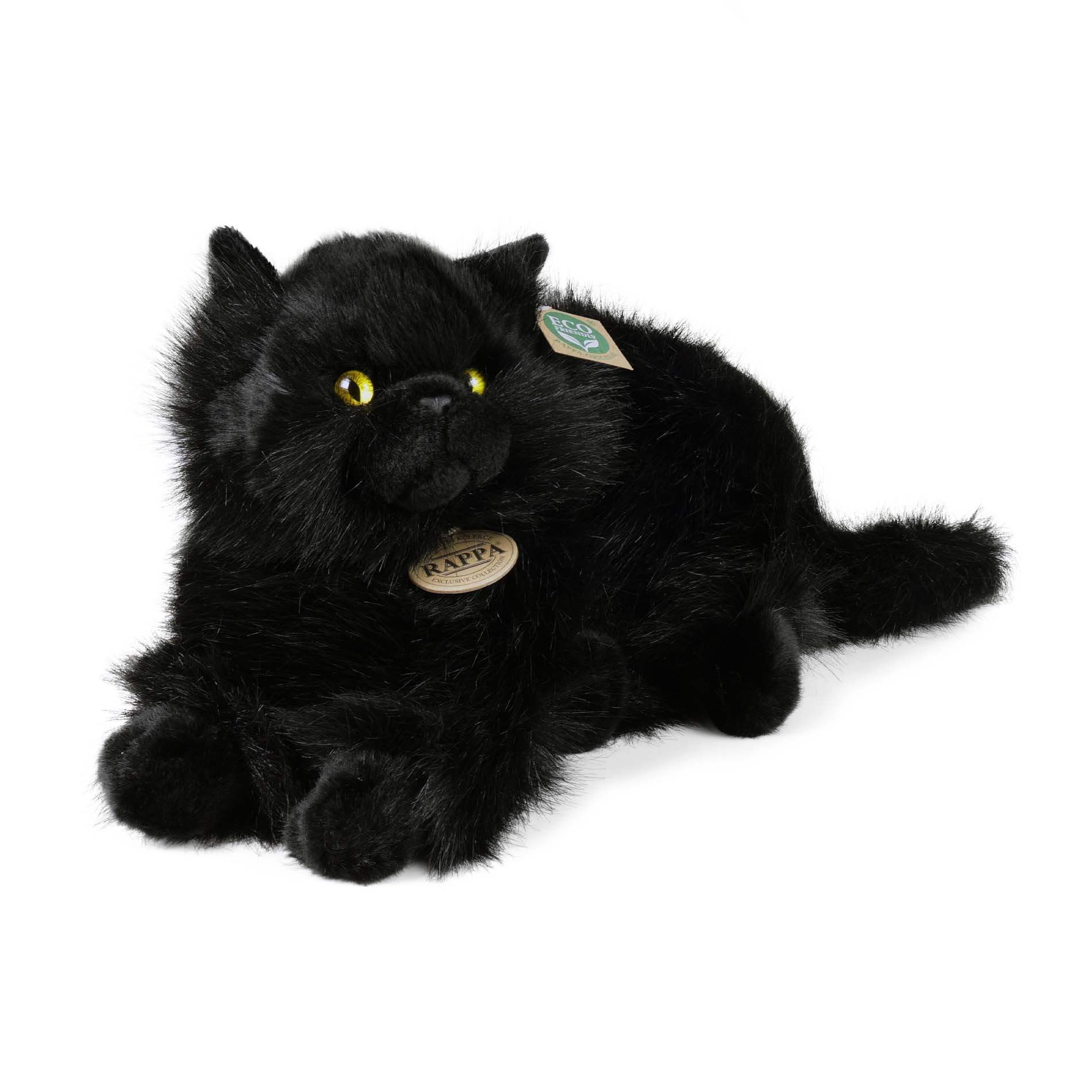 Este suave gato negro con llamativos ojos amarillos parece real y es perfecto para abrazar o como decoración en la habitación infantil. Los materiales de calidad y las costuras detalladas garantizan una larga durabilidad incluso con juego frecuente.