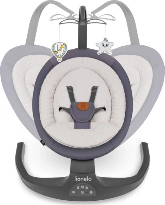 La práctica hamaca para bebés 2 en 1 Ralf de la marca LIONELO ofrece a los niños un lugar cómodo para jugar, descansar y dormir. Gracias a la función de balanceo con detección automática de movimiento, 5 velocidades y temporizador (8/15/30 min), el bebé se calma fácilmente. La hamaca cuenta con un asiento perfilado con cojín suave, 12 melodías con control de volumen, mando a distancia y barra de juegos desmontable con dos juguetes. Para la seguridad no faltan arneses de 5 puntos y topes antideslizantes.