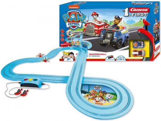 La pista Carrera FIRST con temática de Patrulla Canina es una elección perfecta para niños desde 3 años. Gracias a su sencillo sistema analógico, construcción robusta y alimentación con pilas, los pequeños pilotos disfrutarán de una conducción segura y duradera. El módulo de alimentación interactivo añade efectos de sonido y luz y minijuegos divertidos que mantienen la atención y desarrollan la coordinación.