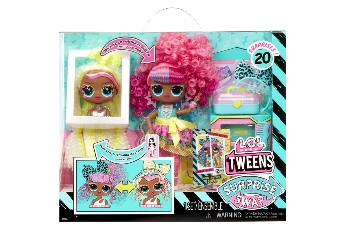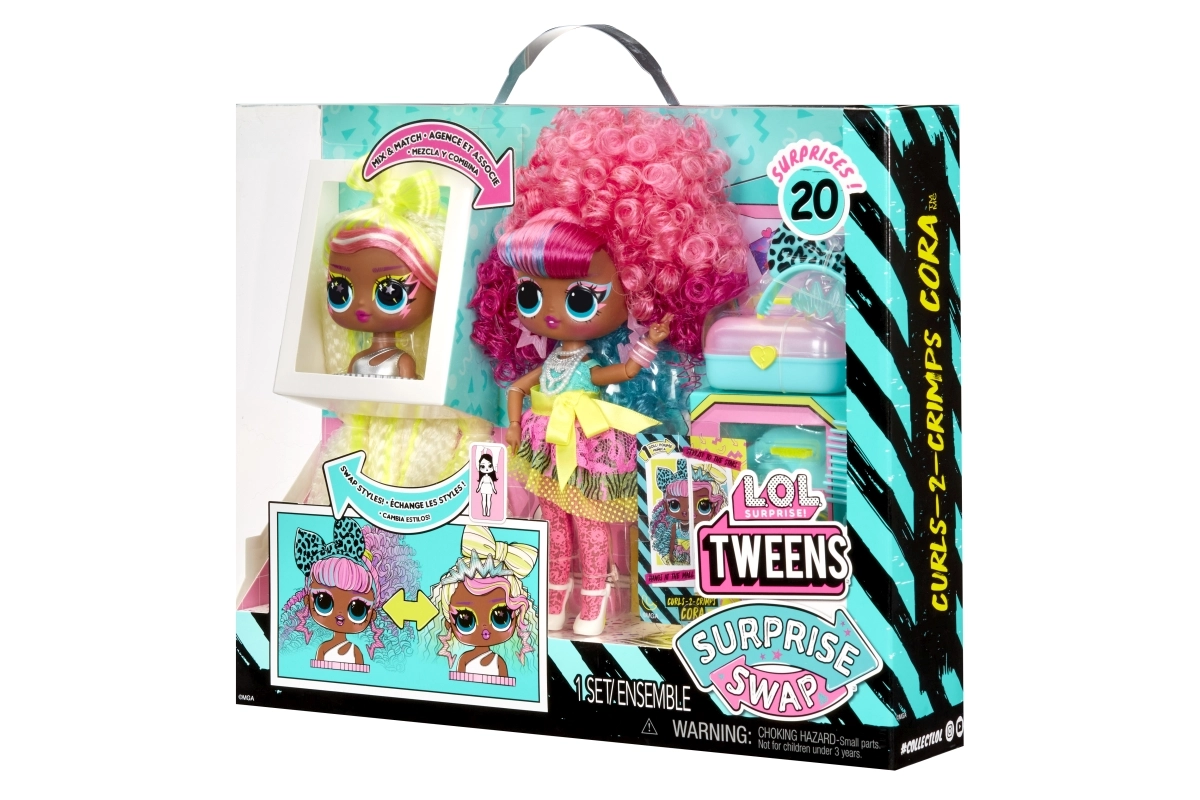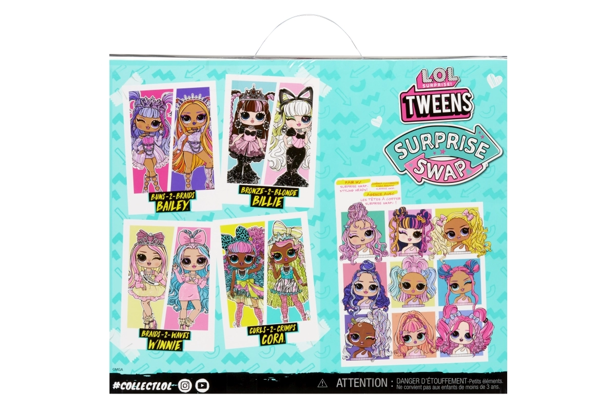 La muñeca L.O.L. Surprise! Swap Tweens es la incorporación perfecta a cualquier colección. Ofrece la opción de intercambiar la cabeza, lo que aporta diversión con un descubrimiento constante y posibilidades de combinación. Llega con varios accesorios para el cabello y una cabeza para peinar, que permite crear looks únicos.