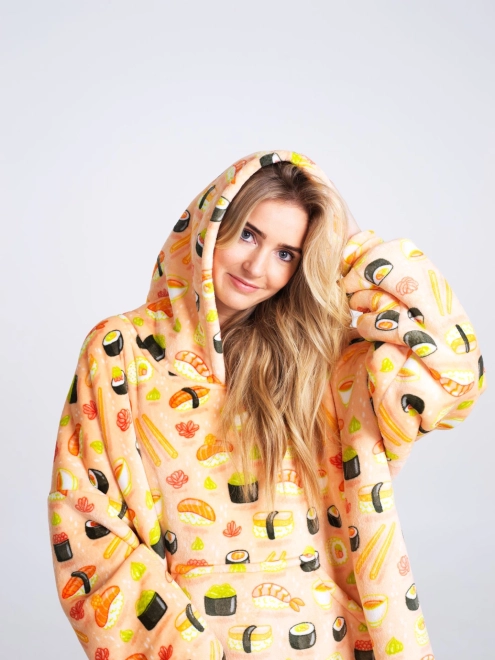 Estampado de sushi, capucha y gran bolsillo