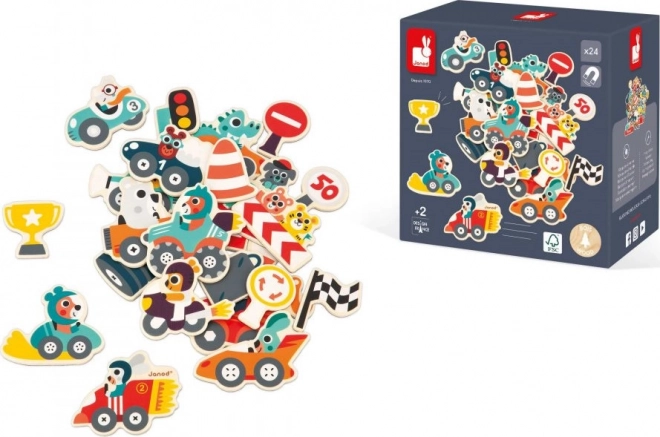 Descubre un set de 24 imanes de madera con forma de coches que aportará diversión en cualquier superficie magnética. Deja que los niños vivan increíbles aventuras de carreras directamente en la nevera o en el tablón magnético.
