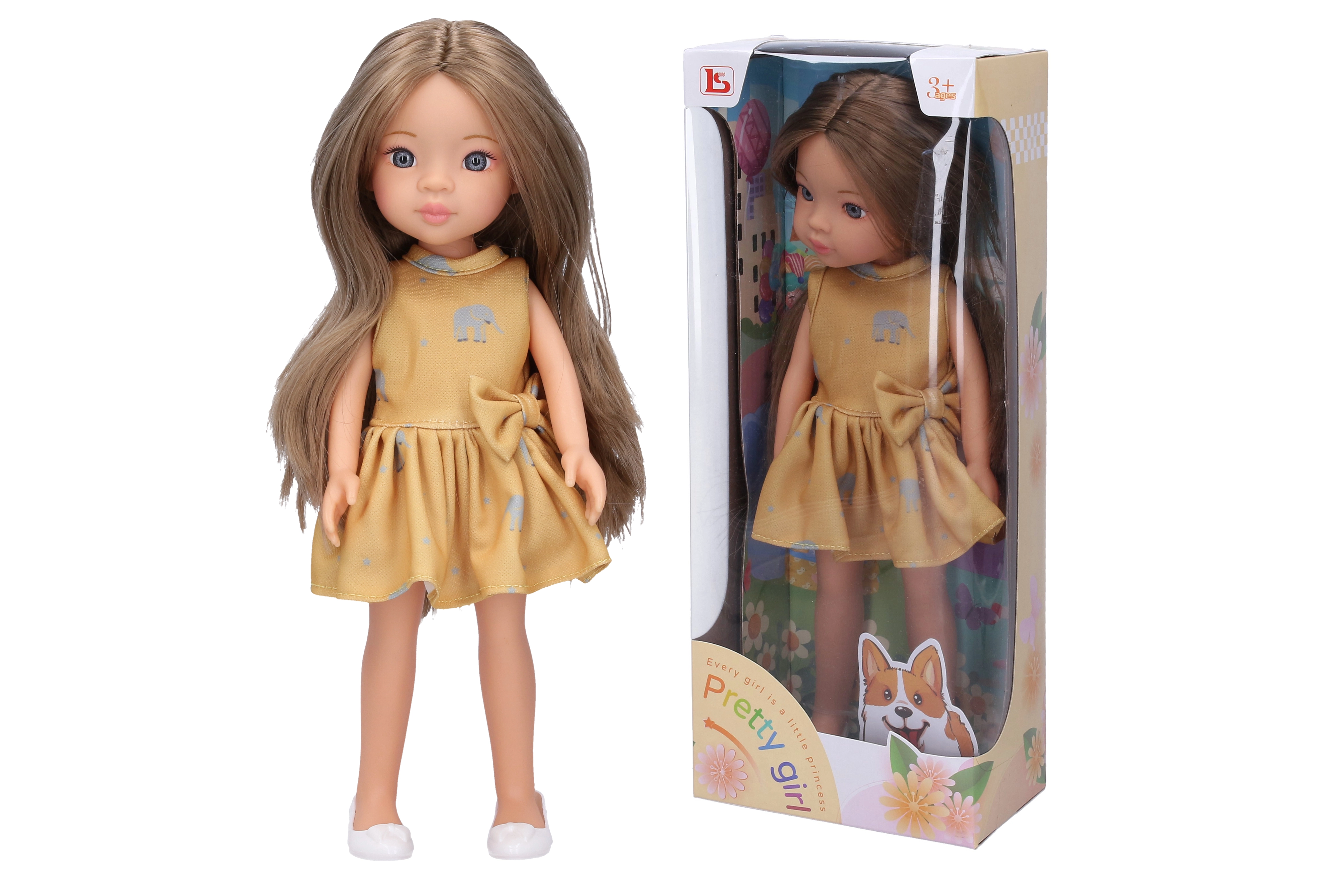 Esta muñeca con vestido amarillo es la compañera perfecta para estimular la imaginación infantil. Con una altura de 30 cm, es ideal para las manos de los niños y ofrece horas de juego divertido.