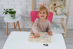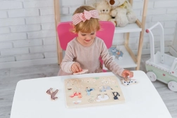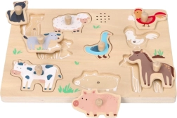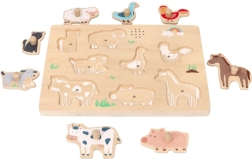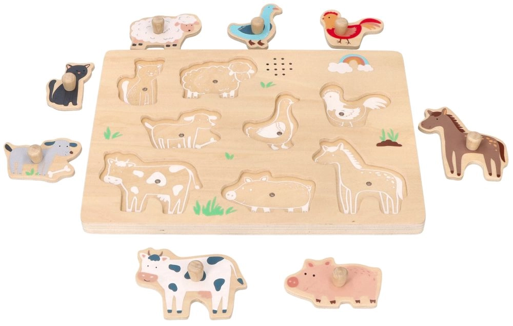 Al colocar la pieza en el sitio correcto, suena el sonido característico del animal. Así, los niños recuerdan mejor los nombres y las apariencias de los animales y el juego resulta más atractivo para ellos.