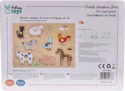 El rompecabezas sonoro de granja ofrece a los niños una forma de juego divertida y educativa. Cada pieza con un animal, al colocarse en su lugar, reproduce su sonido típico, lo que ayuda a los niños a recordar más fácilmente los nombres y a distinguir los diferentes animales. Las ilustraciones claras y las agarraderas en las piezas facilitan la manipulación incluso para los más pequeños.