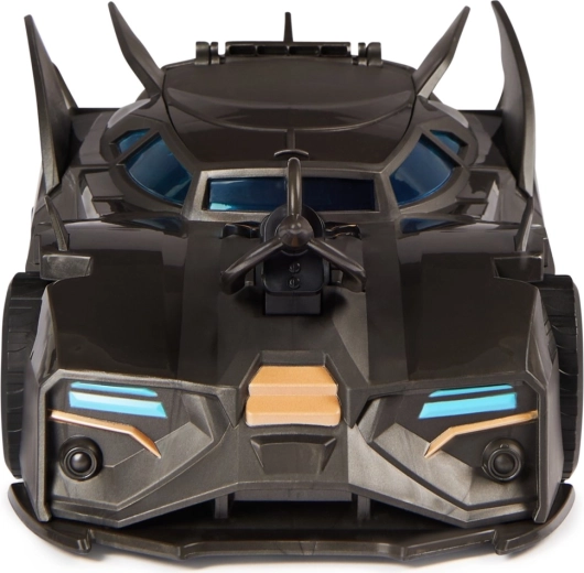 Carrocería negra mate, ventanas con tono azul y las líneas icónicas del Batmóvil subrayan su aspecto coleccionable y sus funciones de juego.