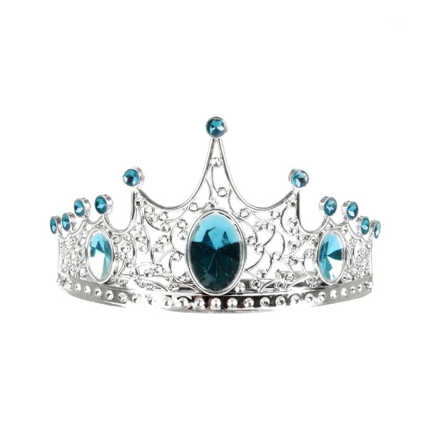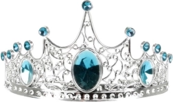 La corona plateada con piedras azules añade un toque de cuento a cualquier disfraz y se sujeta cómodamente en la cabeza.