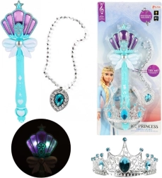 Convierte a las pequeñas soñadoras en una princesa de hielo con este set mágico que incluye una varita con luz y sonido, una brillante corona y un elegante collar. Ideal para disfraces de cuento, fiestas infantiles y juegos de fantasía del día a día.