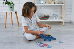Los rompecabezas de dinosaurio de colores ayudan a los niños a mejorar sus habilidades de motricidad fina y la coordinación.