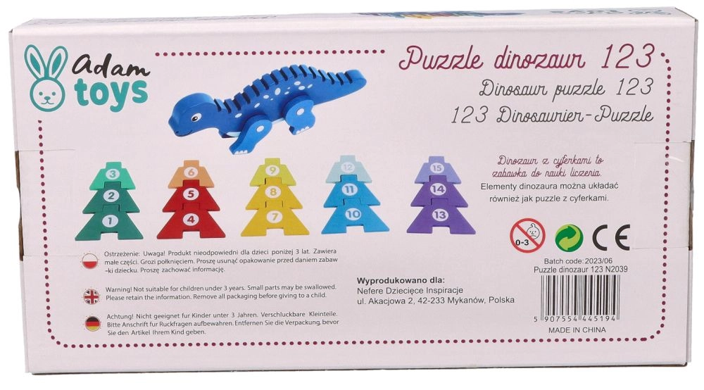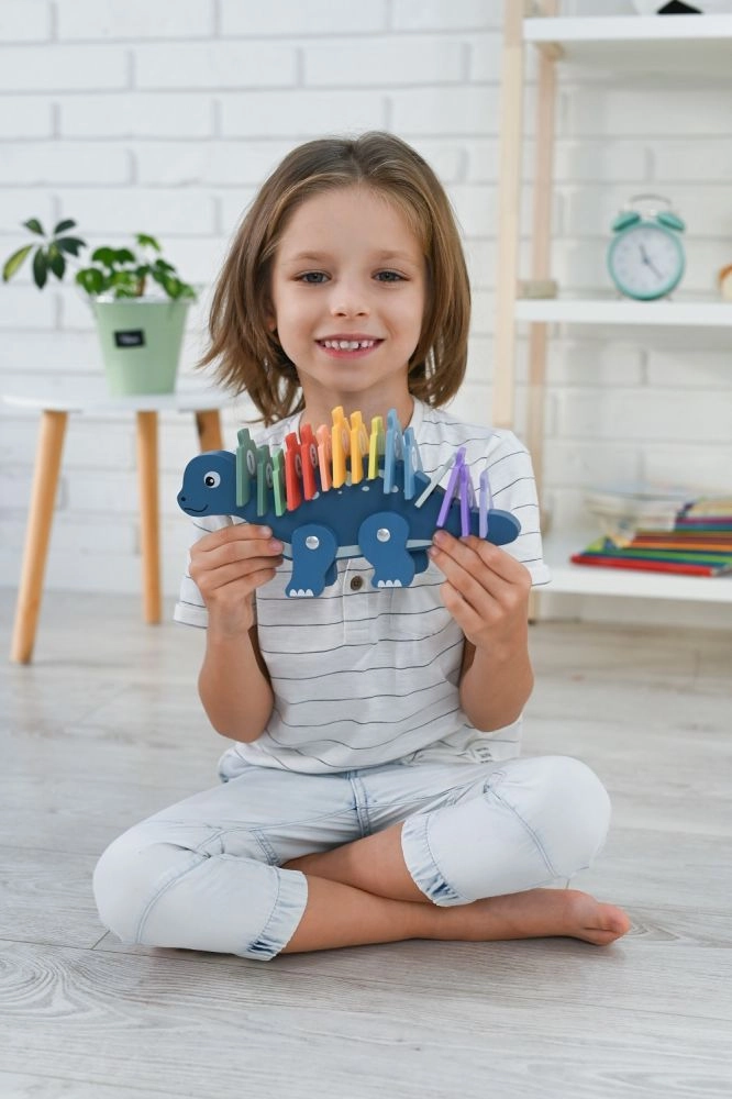 Descubre la magia del rompecabezas de dinosaurio de madera, que combina diversión y aprendizaje. Este creativo rompecabezas incluye piezas de colores que los niños pueden colocar en la espalda del dinosaurio, aprendiendo así a reconocer los números y mejorando su coordinación mano-ojo. El juguete está fabricado con madera de alta calidad, lo que garantiza su larga durabilidad y seguridad durante el juego.