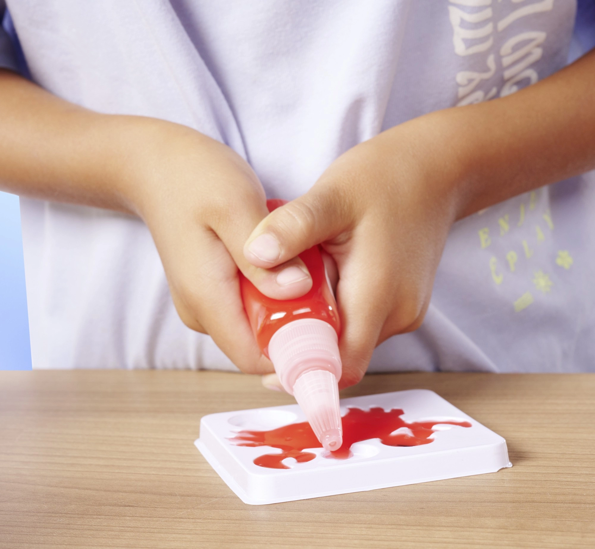 Cada botellita tiene un aplicador fino que permite rellenar detalles en los moldes con el máximo control. Así, los niños crean fácilmente formas y líneas limpias y definidas.