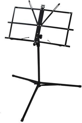 Este atril de metal pintado está equipado con una base de trípode y altura regulable, lo que permite su uso tanto de pie como sentado. Incluso puede colocarse sobre una mesa ajustándolo a la altura más baja. El pupitre abatible se adapta fácilmente a tus necesidades, mientras que el ángulo de inclinación ajustable evita que las partituras se cierren. Adecuado para profesionales y aficionados.
