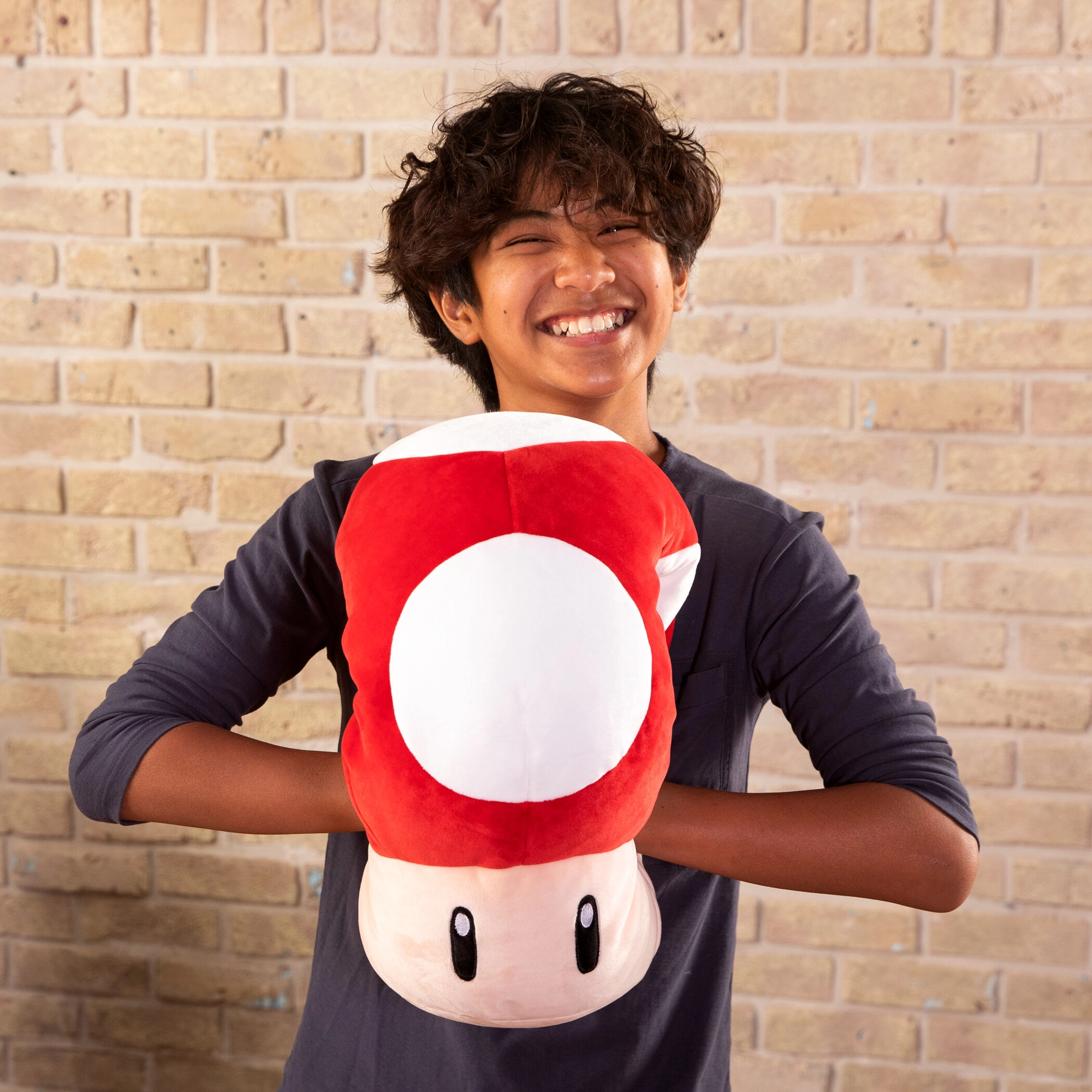 Sumérgete en el mundo de Super Mario con la seta de peluche Mocchi Mocchi de 34 × 31 cm. Destaca por su superficie extraordinariamente suave y aterciopelada y su generoso relleno, lo que la hace perfecta para abrazar, descansar y jugar. El llamativo diseño con sombrero rojo y lunares blancos será reconocido al instante por todos los fans.