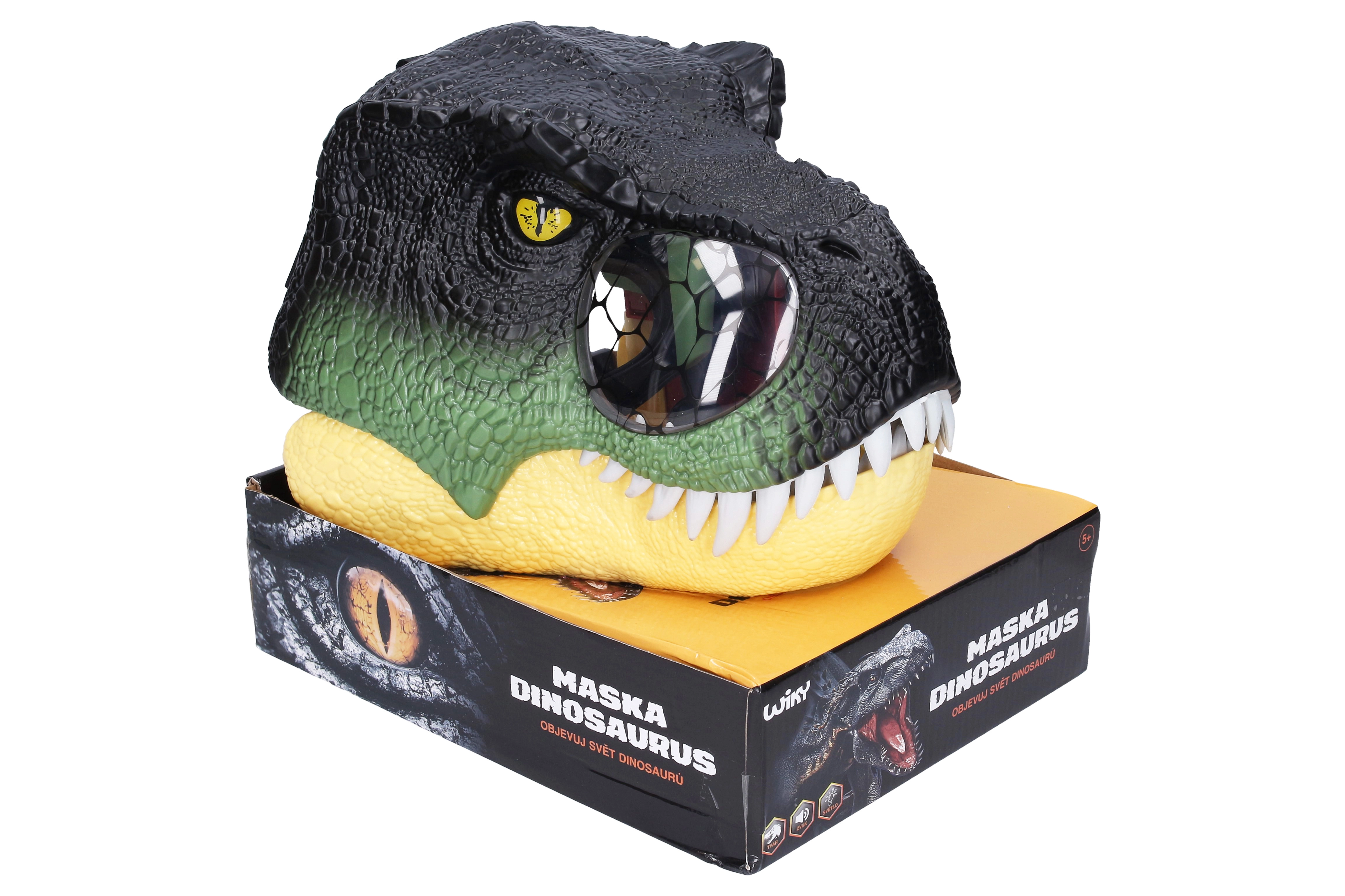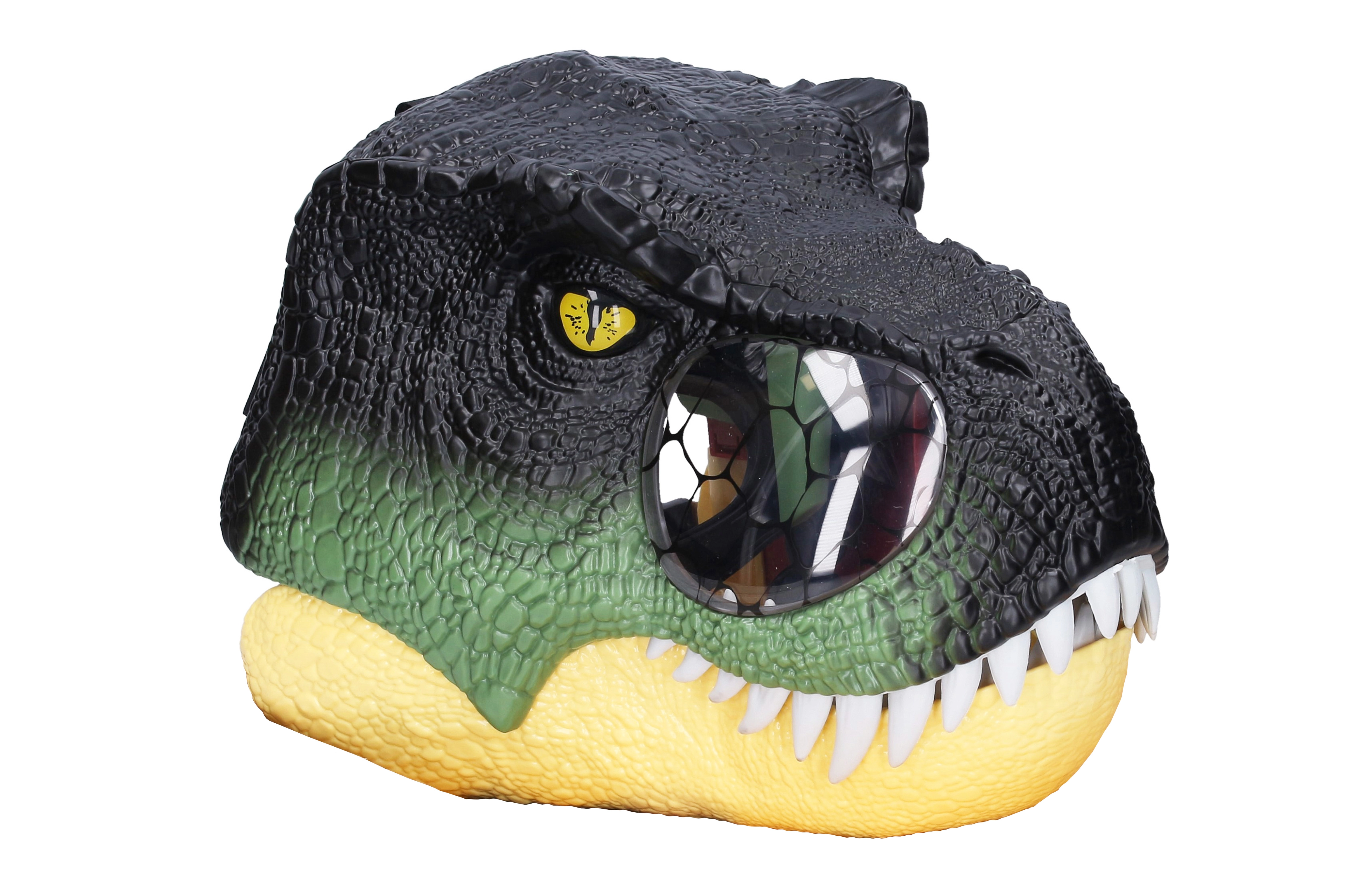 La realista máscara de dinosaurio transforma a cualquier niño en un depredador prehistórico. Con el movimiento de la cabeza se abre la mandíbula, se encienden los ojos y suena un rugido de dinosaurio. Incluye 3× pilas AG13, así que la diversión puede comenzar de inmediato.