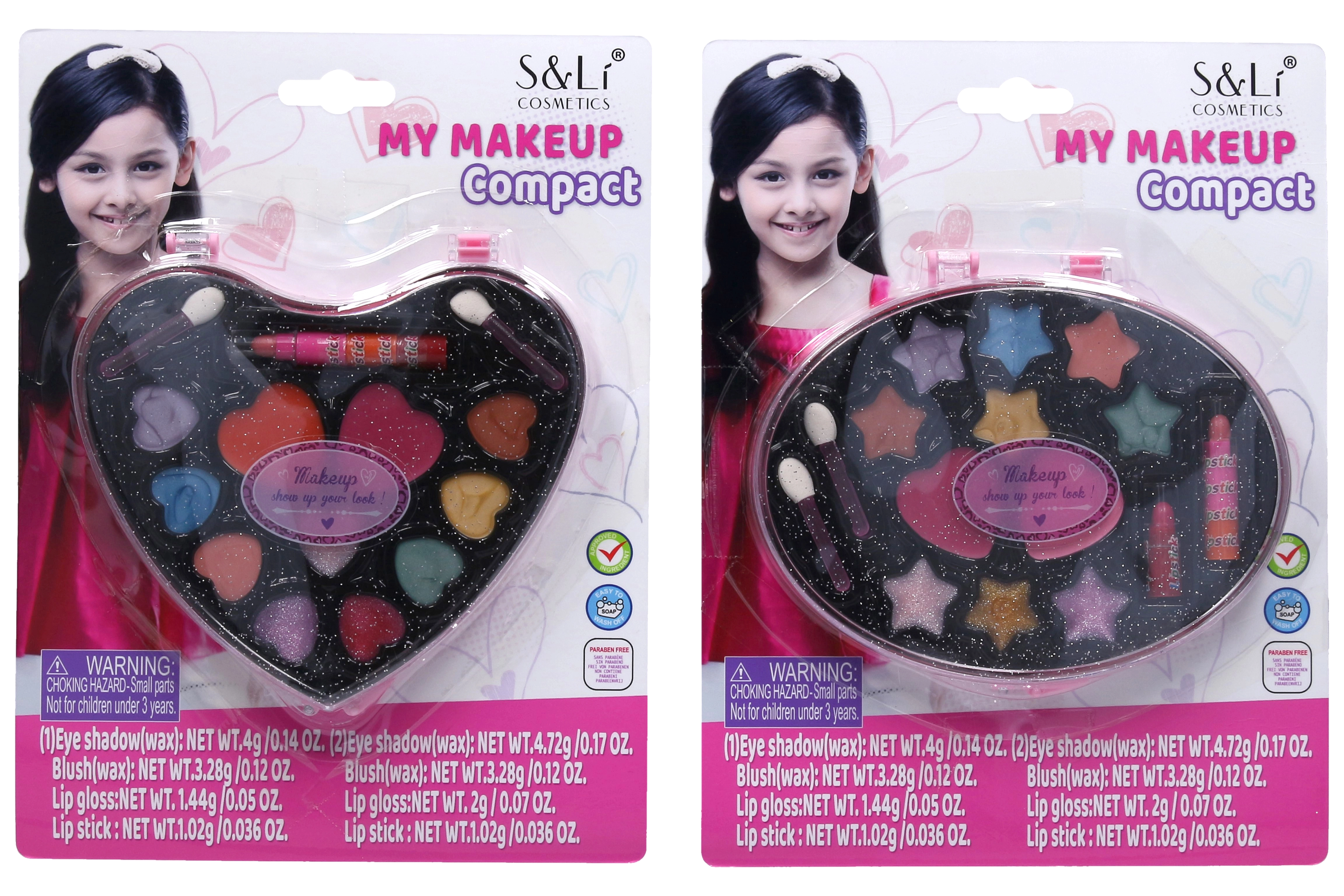 Descubre el set de cosmética My Makeup perfecto, que ofrece la combinación ideal de barra de labios, brillo labial, sombras de ojos y colorete, complementados con prácticos aplicadores.
