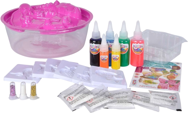 Descubre el mundo de la creación con Aqua Gelz, un set creativo con temática de sirenas en el que los niños fabrican figuras 3D coloridas de gel. Solo hay que preparar la solución, rellenar los moldes con geles brillantes, sumergirlos en agua y, en pocos segundos, obtendrás decoraciones suaves y brillantes listas para jugar. Ideal para desarrollar la motricidad fina, la imaginación y la creatividad.
