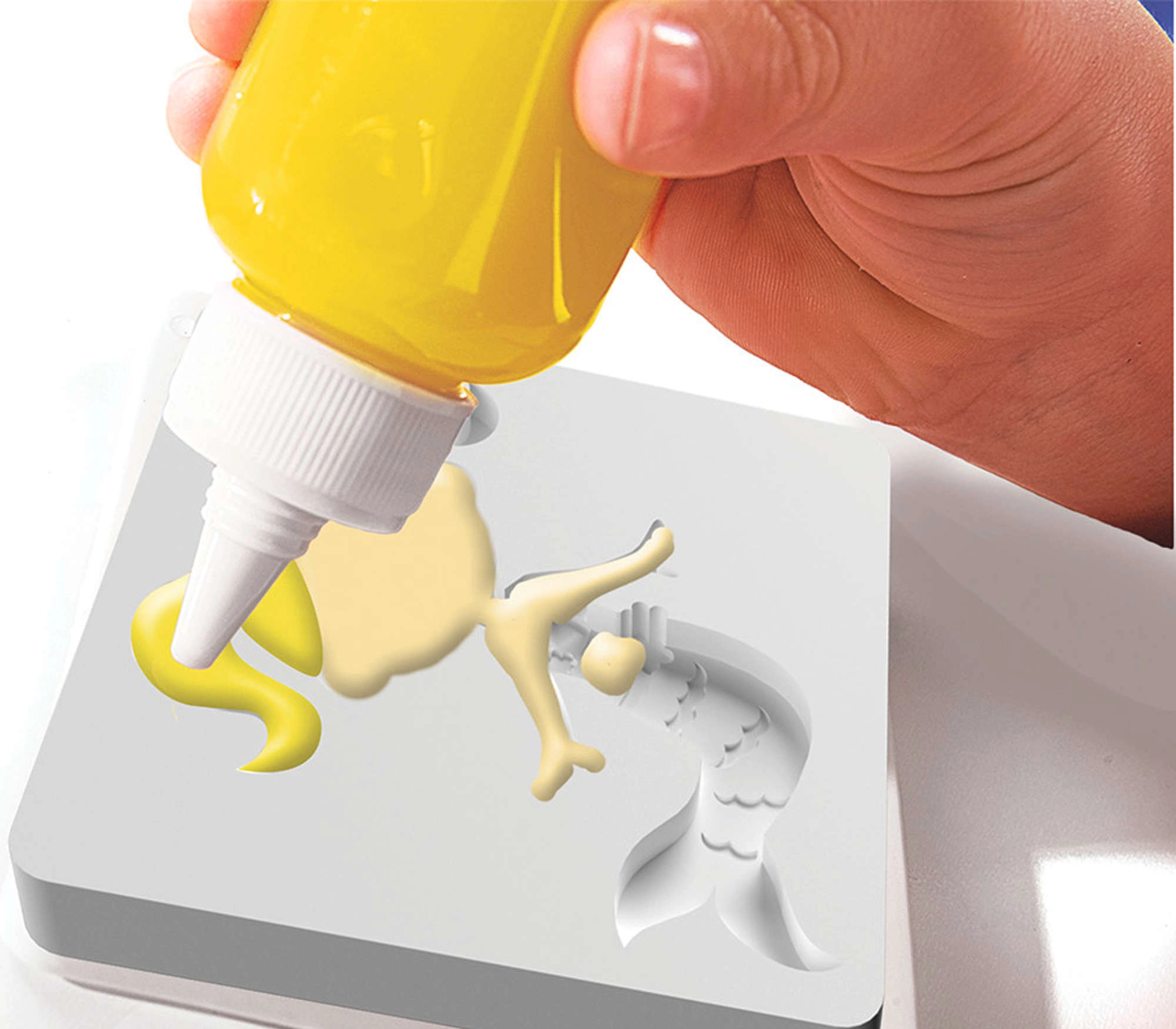 Rellena los moldes con geles de colores, sumérgelos en la solución preparada y observa cómo una imagen plana se transforma en una suave decoración 3D. Fácil, rápido y divertido.