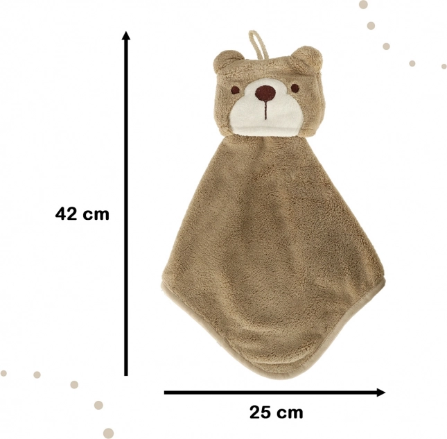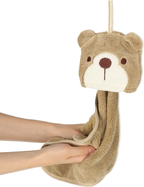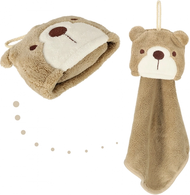 Esta toalla infantil con motivo de oso está diseñada especialmente para niños. Sus dimensiones compactas de 25 x 42 cm son ideales para manos pequeñas, lo que asegura un manejo y uso fáciles. La toalla está equipada con un práctico lazo para colgar, lo que facilita colocarla en un gancho al alcance del niño.