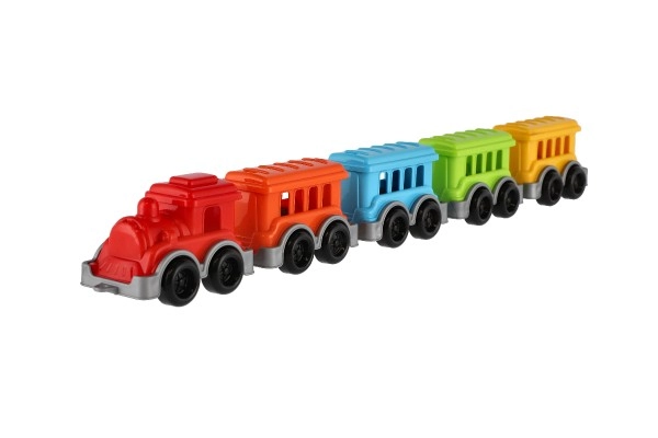 Este tren lleno de color con locomotora y cuatro vagones fáciles de acoplar es una gran elección para el juego diario. El plástico resistente soporta el trato infantil y los colores vivos llaman la atención a primera vista. Las piezas se pueden acoplar y desacoplar con facilidad, lo que desarrolla las habilidades de coordinación y el pensamiento lógico.