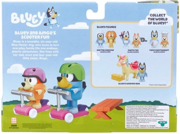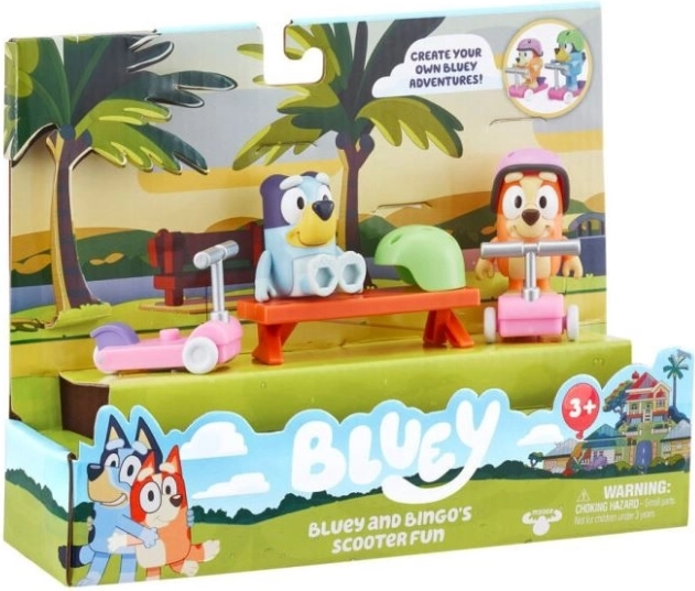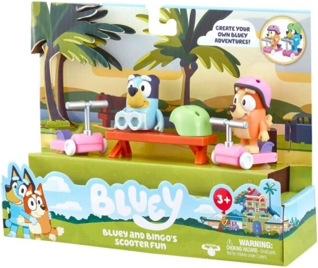 Vive la diversión con el set de juego Bluey - Paseo en patinete, que da vida a los personajes Bluey y Bingo de la popular serie animada. Este set permite a los niños revivir sus escenas favoritas y, al mismo tiempo, desarrollar su creatividad. Incluye dos figuras articuladas, dos patinetes y dos cascos de seguridad.