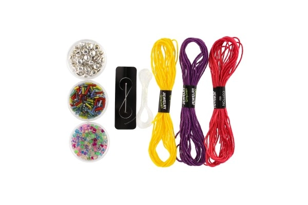 Crea pulseras, collares y colgantes originales con este completo set creativo de bisutería. Incluye cascabeles, cordón elástico, hilos de algodón de colores, cuentas de varias formas, anillas de unión y aguja: todo lo que necesitas para crear de forma rápida y divertida. Un regalo ideal para pequeños creadores a partir de 6 años.