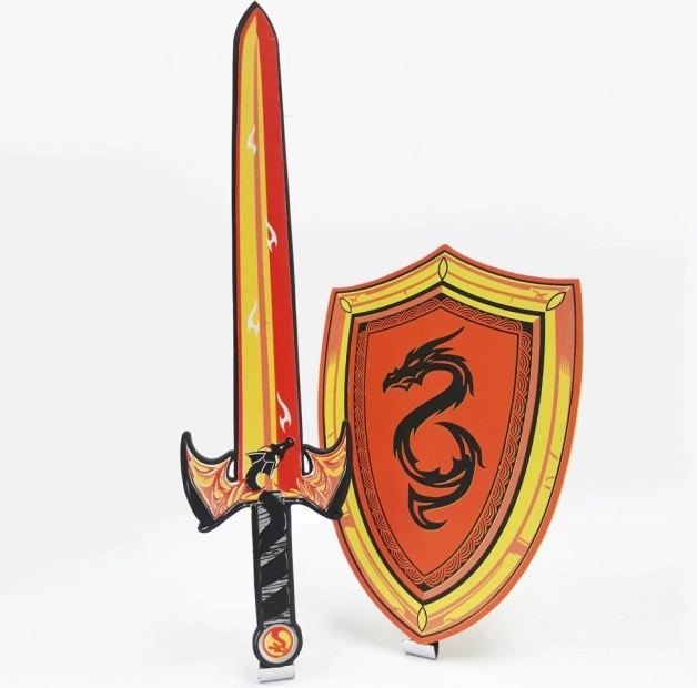 Este set infantil incluye una espada de espuma y un escudo con un atractivo motivo de dragón. La ligera estructura de espuma fomenta un juego seguro sin riesgo de lesiones y es adecuada para niños que adoran las aventuras de caballeros, los juegos de samuráis y la diversión con disfraces.