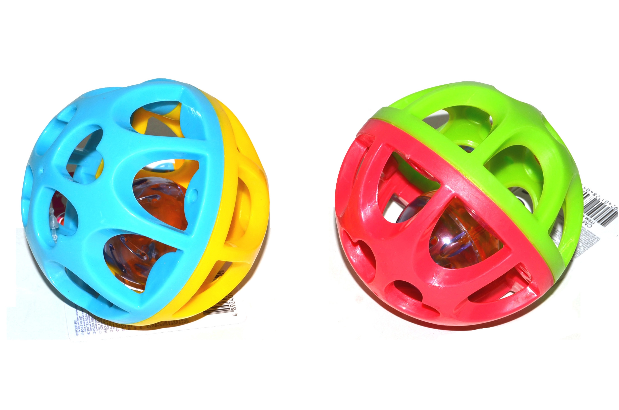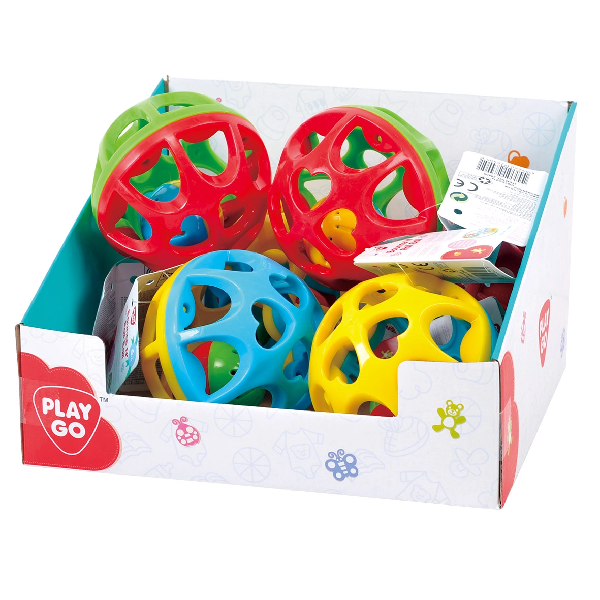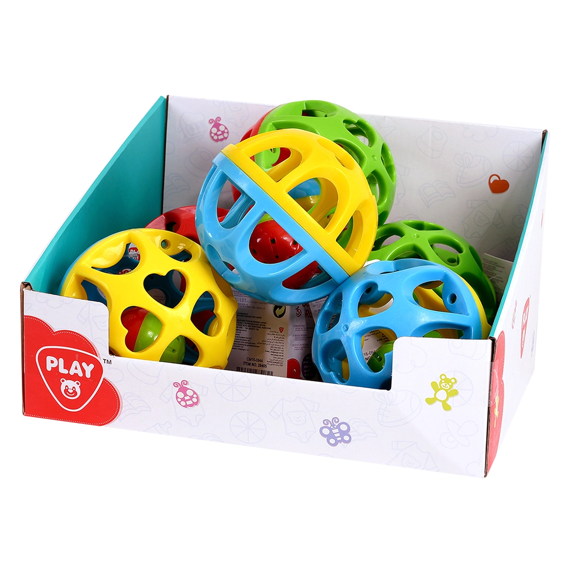 Esta pelota con sonajero es un juguete ideal para los más pequeños. Atrae a los niños por su brillante colorido y el sonido del sonajero. El tamaño de la pelota es de 9 cm, ideal para manos pequeñas. El paquete incluye 8 piezas, que pueden exhibirse en una caja display.