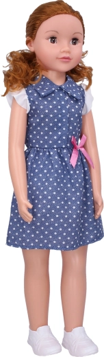 Esta elegante muñeca caminante con vestido azul de lunares y lazo rosa encantará a cualquier niño. Gracias a su altura de 70 cm, resulta muy realista, es fácil de llevar de la mano y al andar da pasos fieles. Sus ojos que parpadean y el detallado cabello le aportan el encanto de una amiga de verdad.