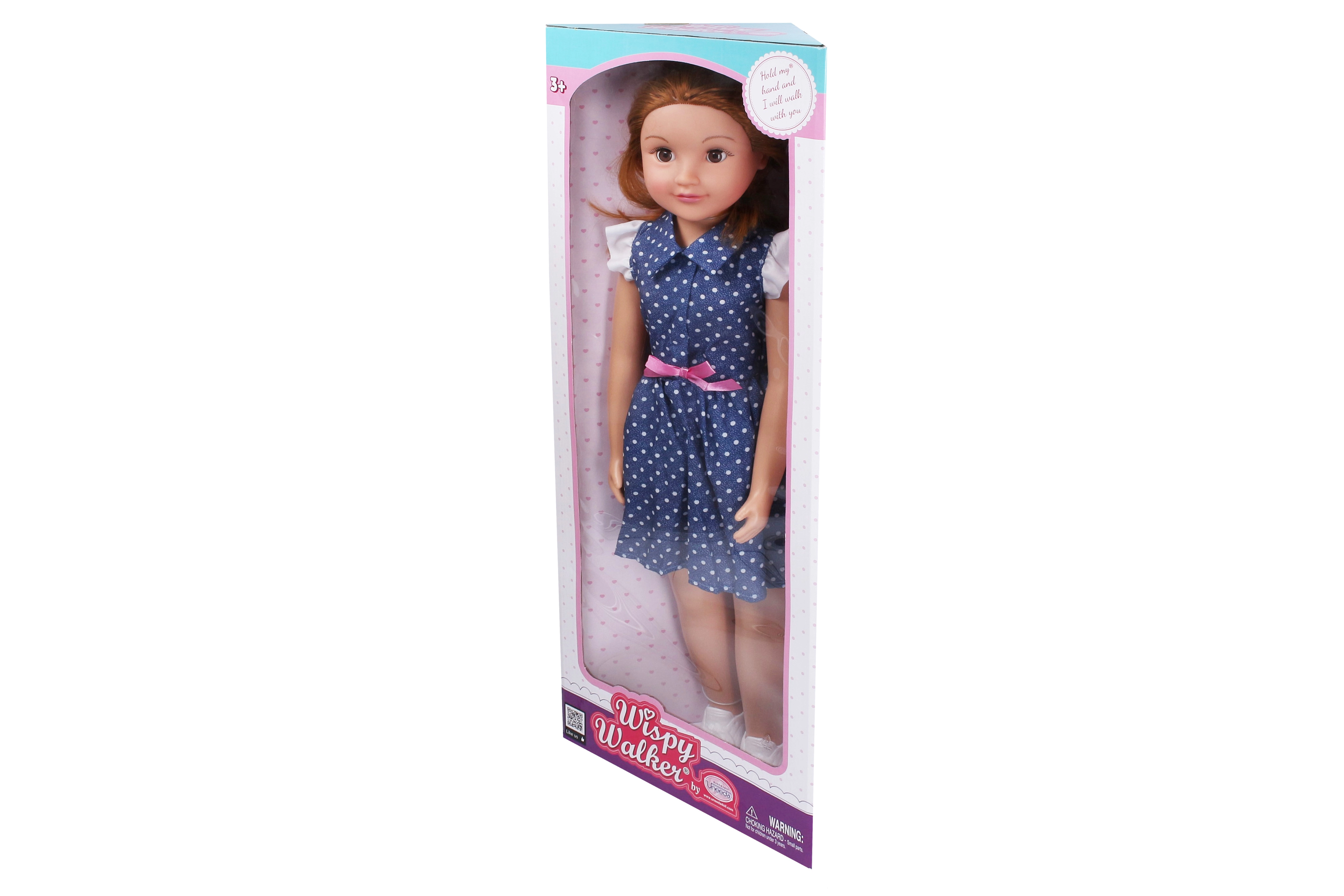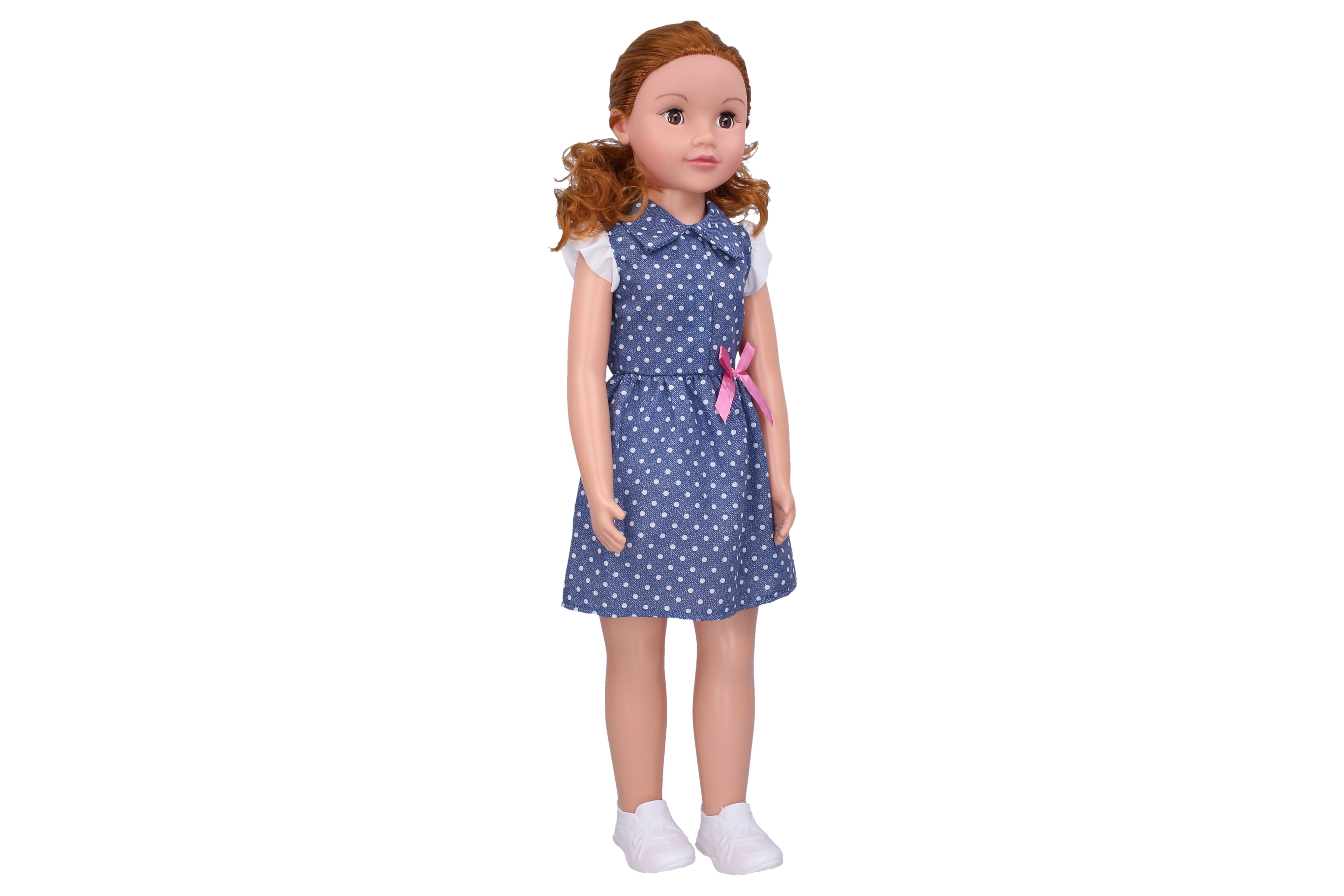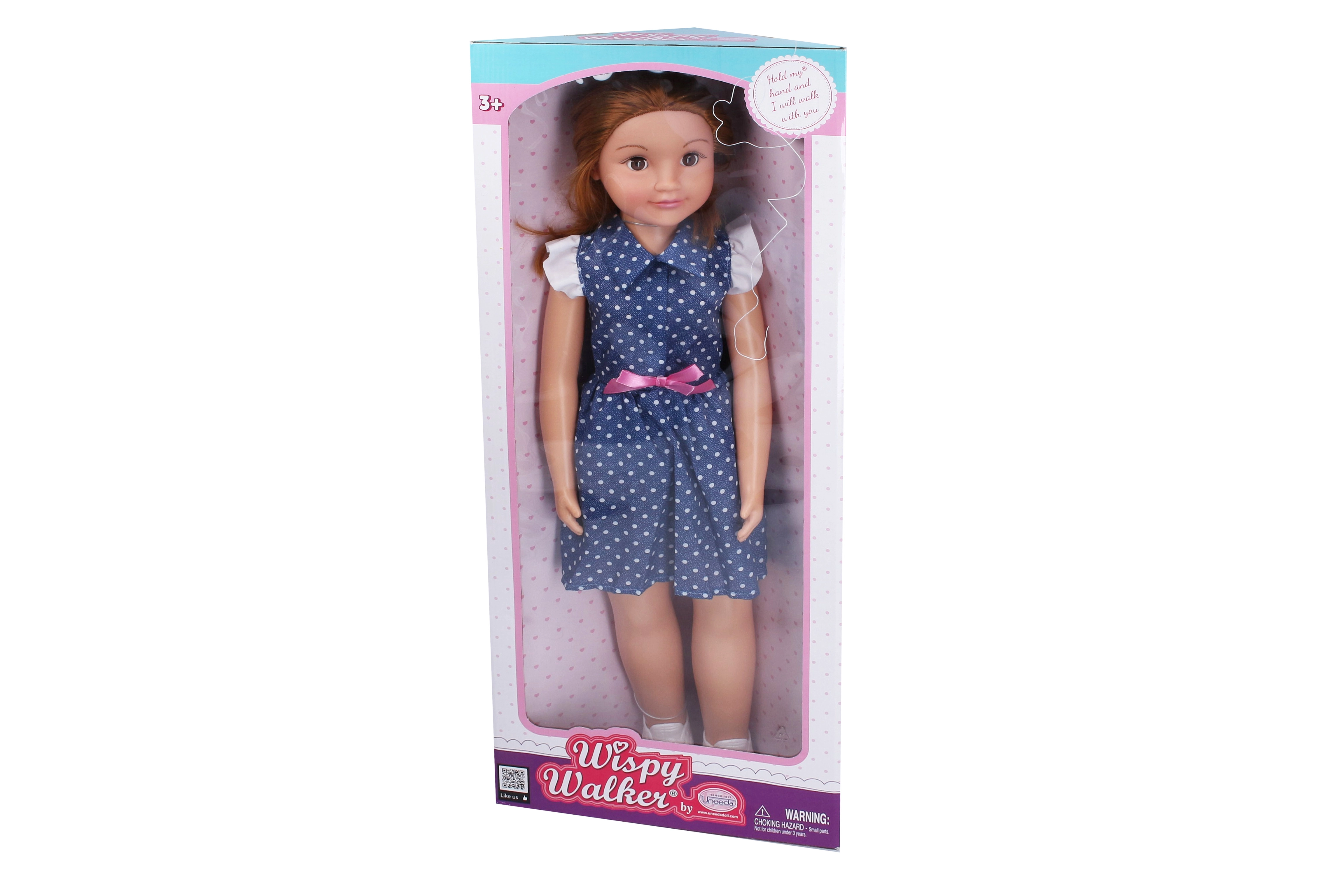 Descubre a tu nueva mejor amiga: una muñeca caminante de 70 cm con un adorable vestido azul de lunares. La muñeca tiene ojos que parpadean, extremidades articuladas y al llevarla de la mano imita el movimiento de caminar. Ideal para juegos de rol, paseos y para desarrollar la imaginación de niños a partir de 3 años.