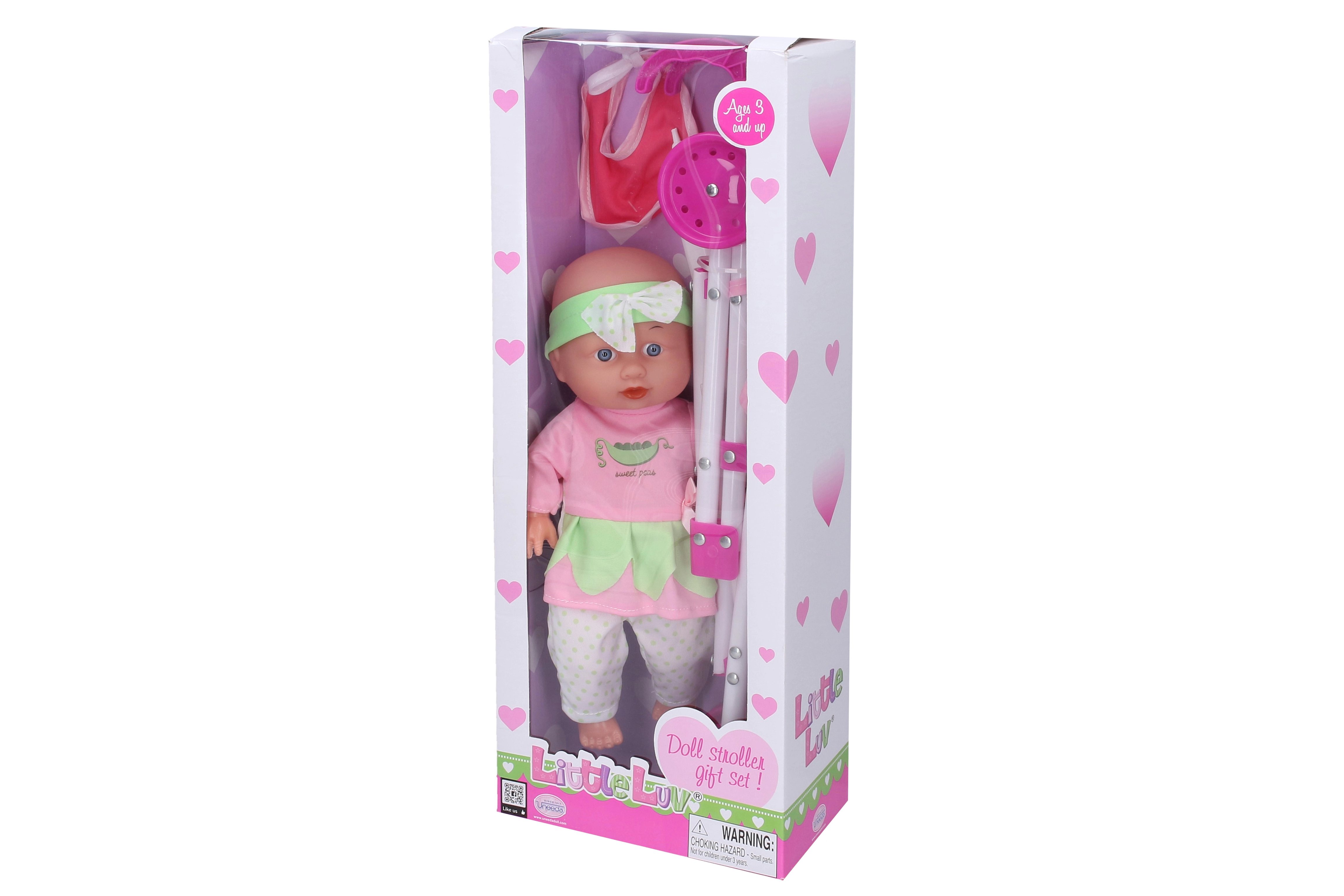 Este hermoso bebé con cochecito es el juguete perfecto para pequeños cuidadores que desean desarrollar su creatividad y destrezas. El bebé está detallado con esmero y el cochecito es fácil de plegar y transportar.