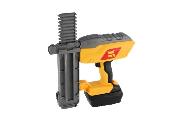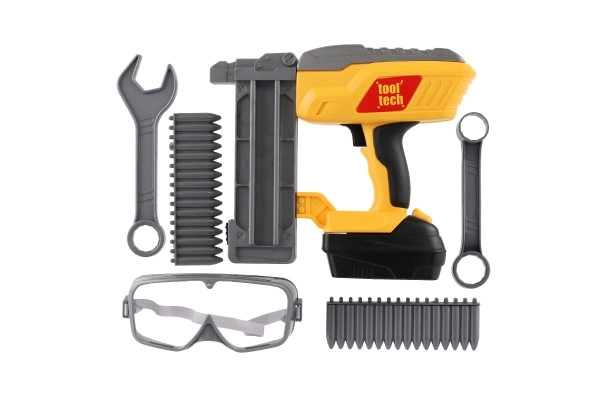 Esta pistola de clavos infantil en color amarillo y gris es ideal para todos los pequeños constructores. Gracias a los efectos de luz y sonido, resulta muy realista, pero completamente segura para jugar en casa y para desarrollar la motricidad fina y la imaginación.