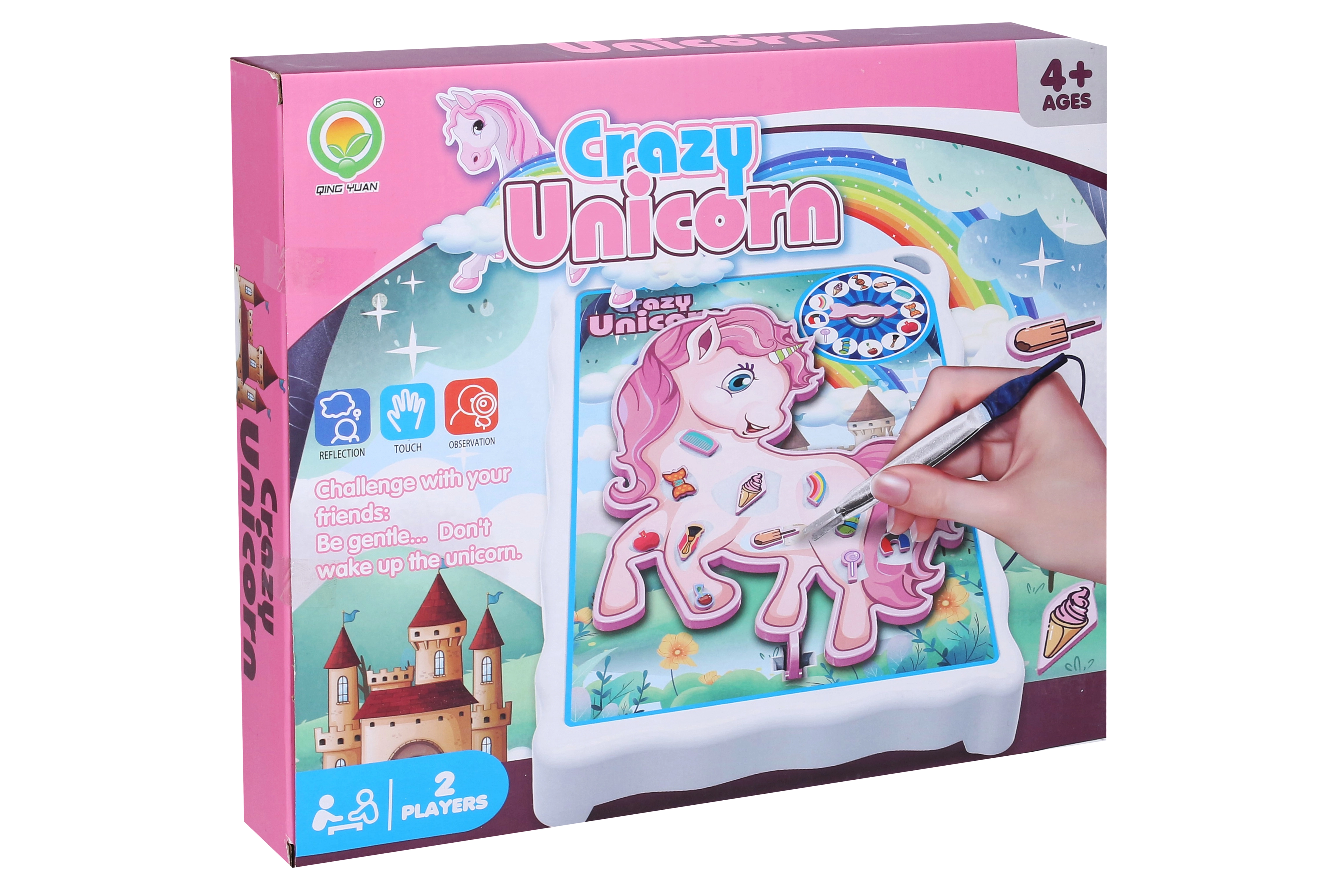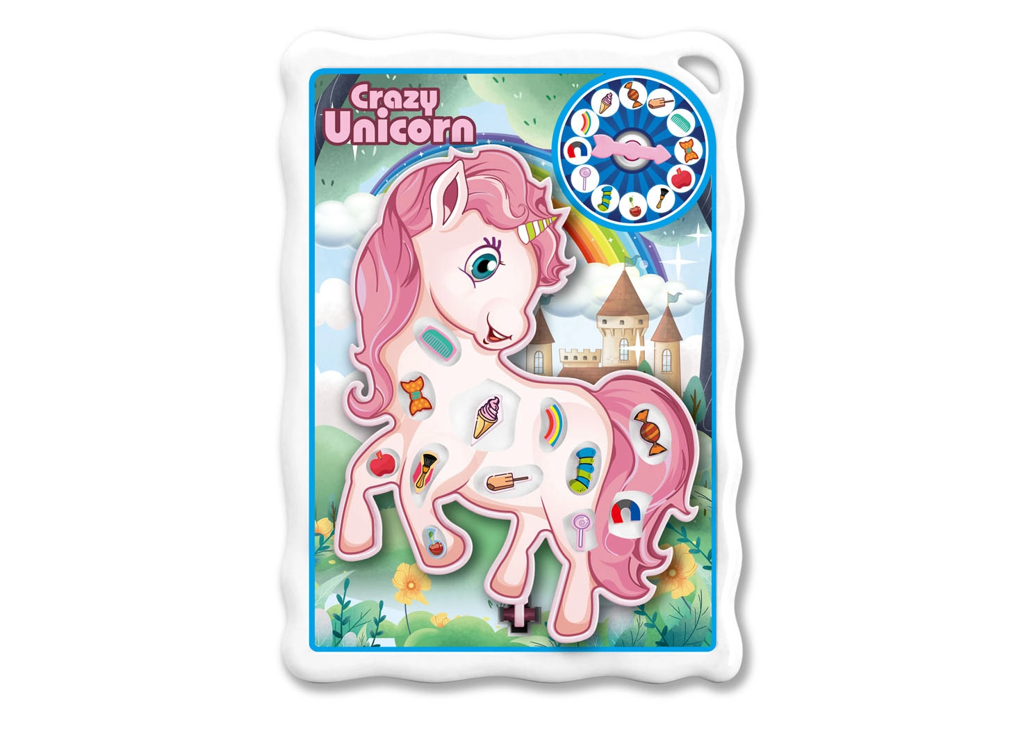 Divertido juego de mesa con un mágico tema de unicornio que desarrolla la motricidad fina y la paciencia. Con ayuda de la pinza, intenta extraer objetos del cuerpo del unicornio; al tocar la bandeja, el juego se activa con vibraciones ¡y la tensión aumenta! Ideal para 1–2 jugadores, incluye ruleta, 12 objetos y pegatinas para personalizar.