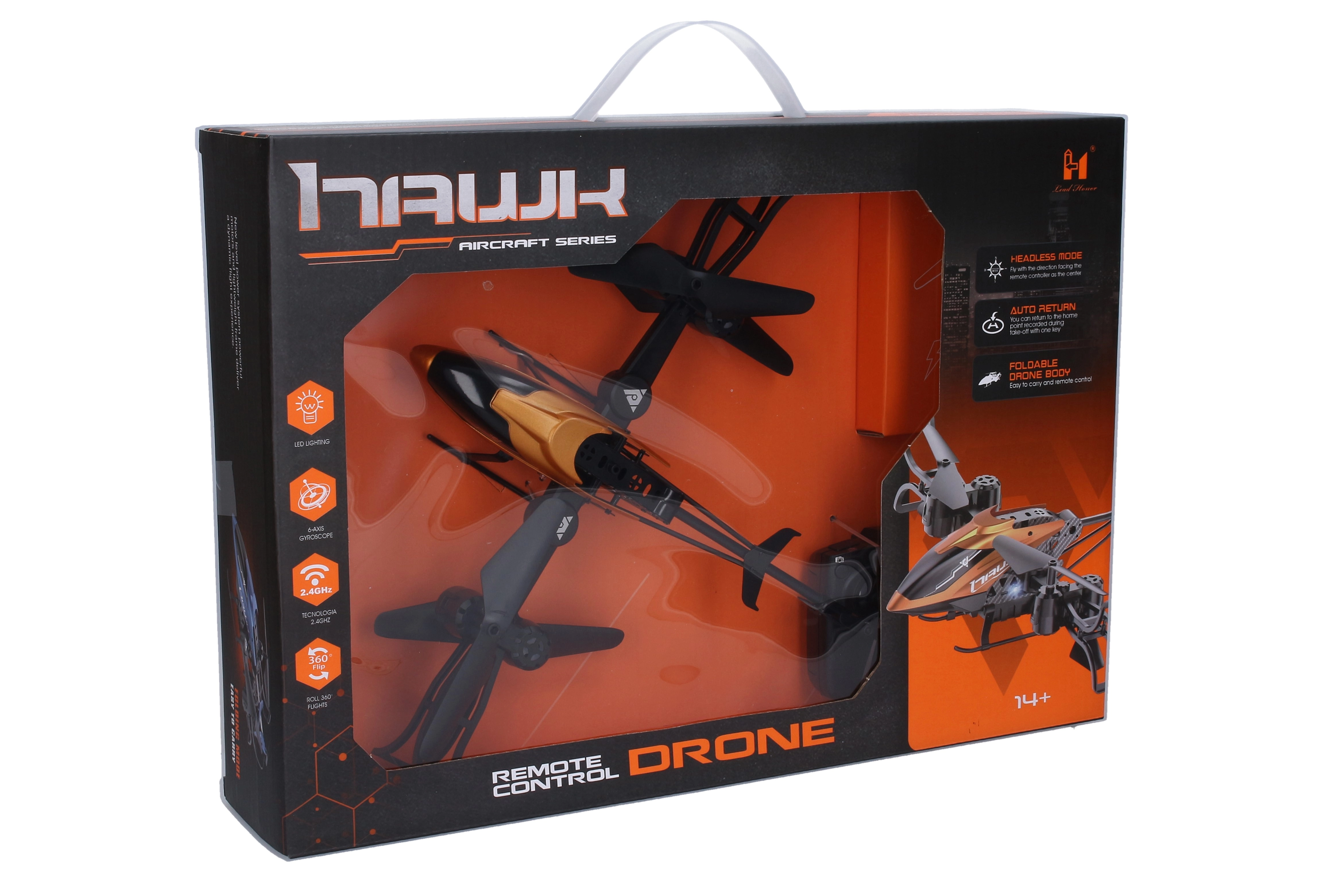 Disfruta de vuelos dinámicos con este helicóptero RC con alas plegables, que ofrece manejo fácil, tonel 360°, efectos de luz y alcance de hasta 50 m. Gracias a la frecuencia de 2.4 GHz, el control es estable y sin interferencias; el botón de despegue/aterrizaje facilita tanto el inicio como el aterrizaje, y la función de regreso al punto de origen siempre te lleva de vuelta.