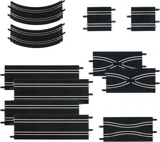 Este amplio set de ampliación es ideal para quienes desean llevar su pista al siguiente nivel. La combinación de tramos rectos, cruces e incluso una chicane permite crear nuevas configuraciones, aumentar la dinámica de las carreras y añadir secciones técnicas para un mayor desafío.
