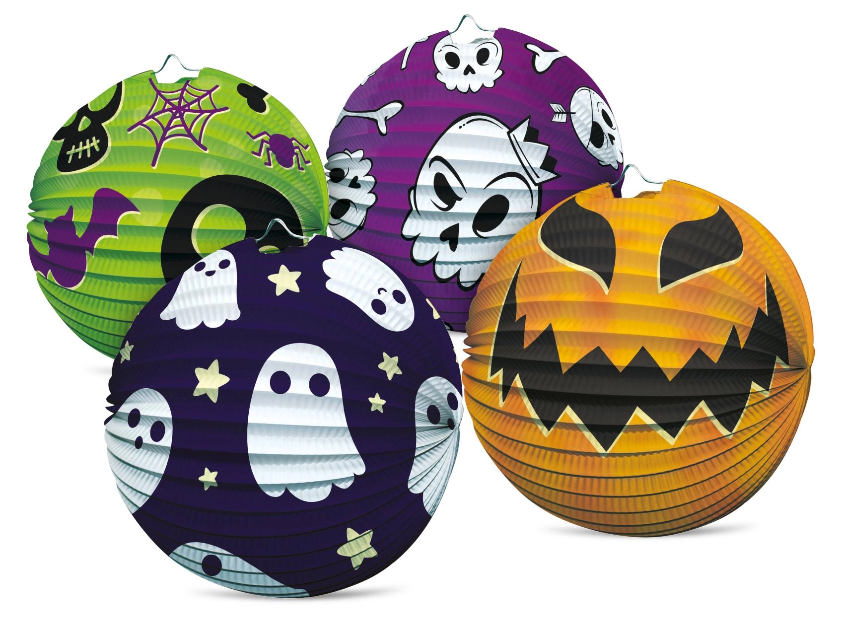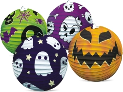 Un elegante farolillo de Halloween con forma de esfera y un diámetro de 25 cm iluminará cualquier fiesta, celebración en el jardín o desfile de farolillos. Gracias a su estructura plegable es ligero, fácil de colgar y crea en un instante una atmósfera terrorífica. Hay 4 diseños de Halloween diferentes a elegir: calabaza, fantasma, calaveras y araña. Ideal como decoración colgante para interiores y eventos exteriores cubiertos.