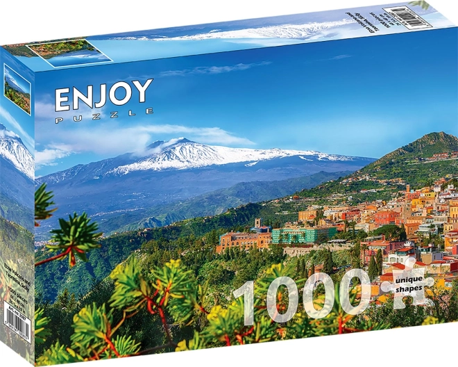 Descubre las bellezas de Sicilia con el rompecabezas Enjoy con el motivo del majestuoso Etna y la pintoresca Taormina. El puzzle de 1000 piezas ofrece una escena detallada y entretenimiento relajante para tus ratos libres. Una vez montado, el rompecabezas mide aproximadamente 68 × 48 cm, ideal para enmarcar.