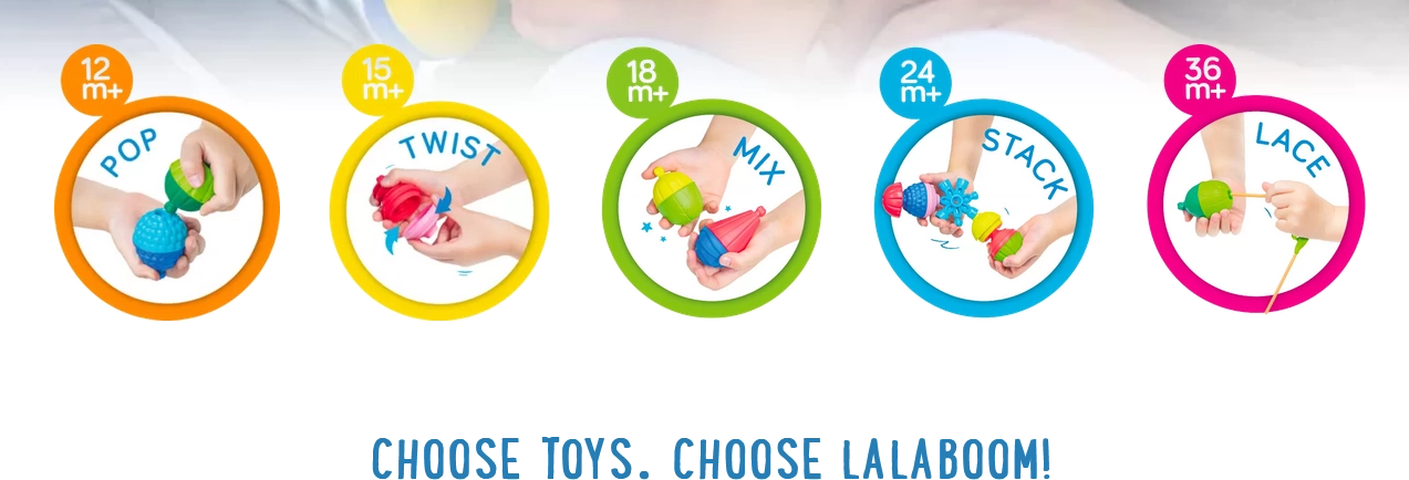 El juego de construcción Lalaboom es un juguete educativo único que ayuda a desarrollar todos los sentidos del niño, especialmente la vista, el oído y el tacto. Los niños tienen la oportunidad de aprender y descubrir sensaciones del entorno a su propio ritmo gracias a los diversos colores, formas y texturas, que proporcionan estímulos táctiles variados.