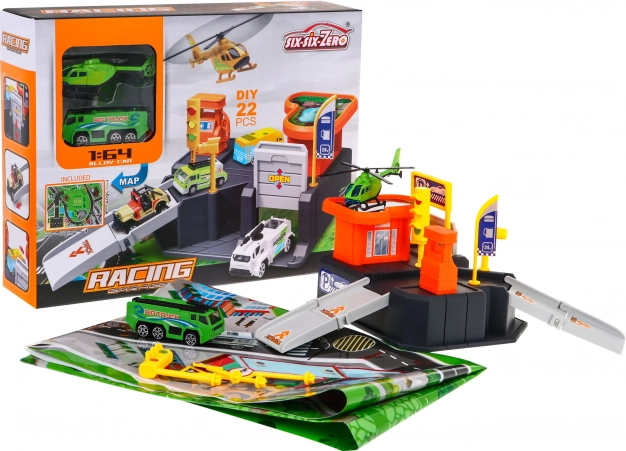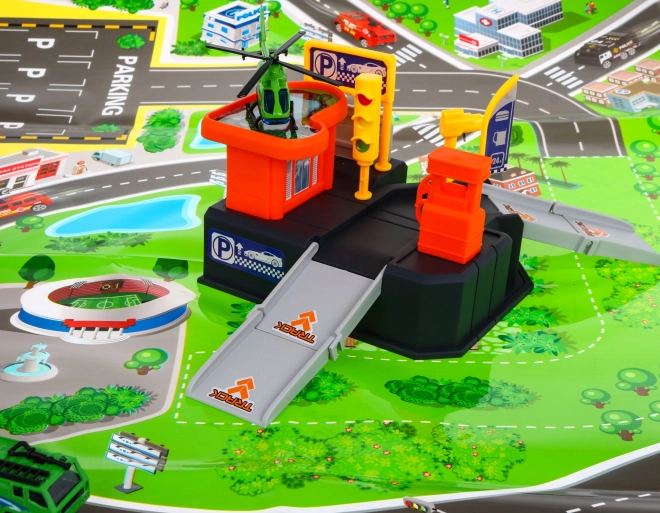 Conjunto compacto y divertido para pequeños conductores: aparcamiento infantil con zona de aterrizaje para helicóptero y gran alfombra de juego con carreteras. Incluye 22 piezas, entre ellas cochecito, helicóptero y pegatinas. Ideal para niños a partir de 3 años, fomenta la imaginación, la motricidad fina y horas de juego creativo, a la vez que no ocupa mucho espacio en la habitación.